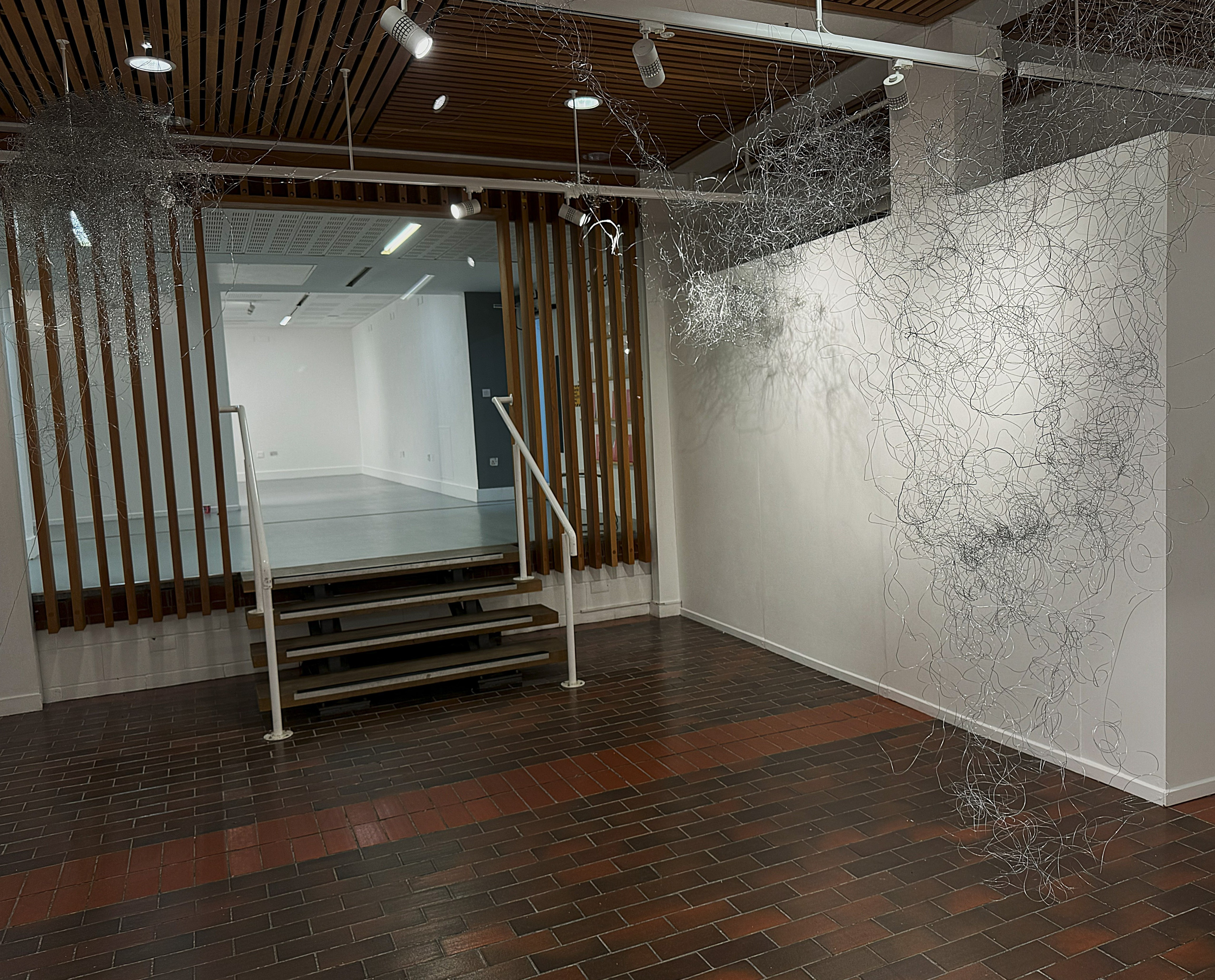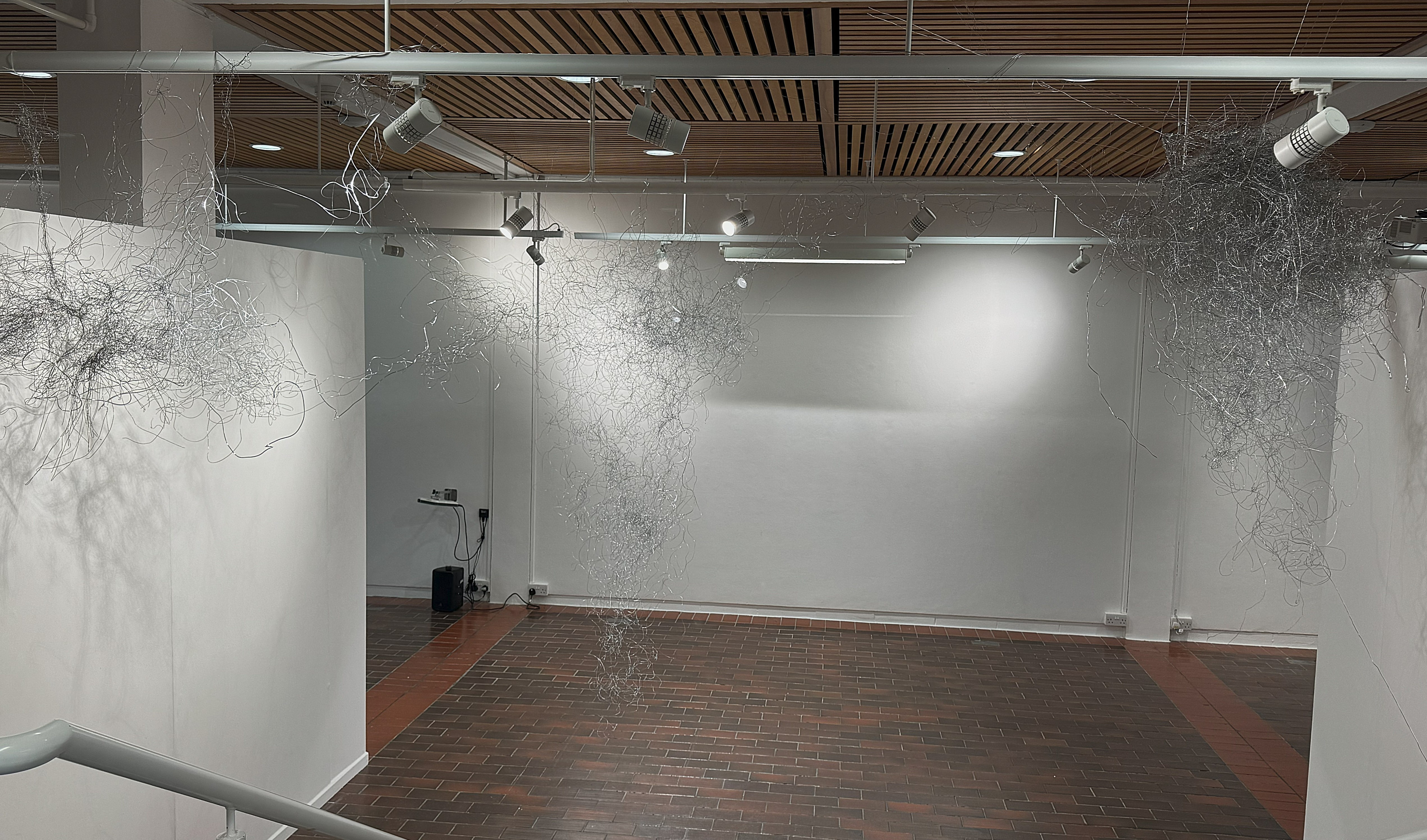 (30 AUG - 21 Sep 2024)This installation explores the fragile and shifting nature of boundaries, both physical and psychological. Using wire as a medium, I investigate the tension between structure and fluidity, control and unpredictability. The work emerges from my ongoing research on the concept of the line, which formed the foundation of my MA Fine Art practice. Initially a research-based project, my study of the line evolved into a deeper exploration of spatial and conceptual boundaries, culminating in this final installation.