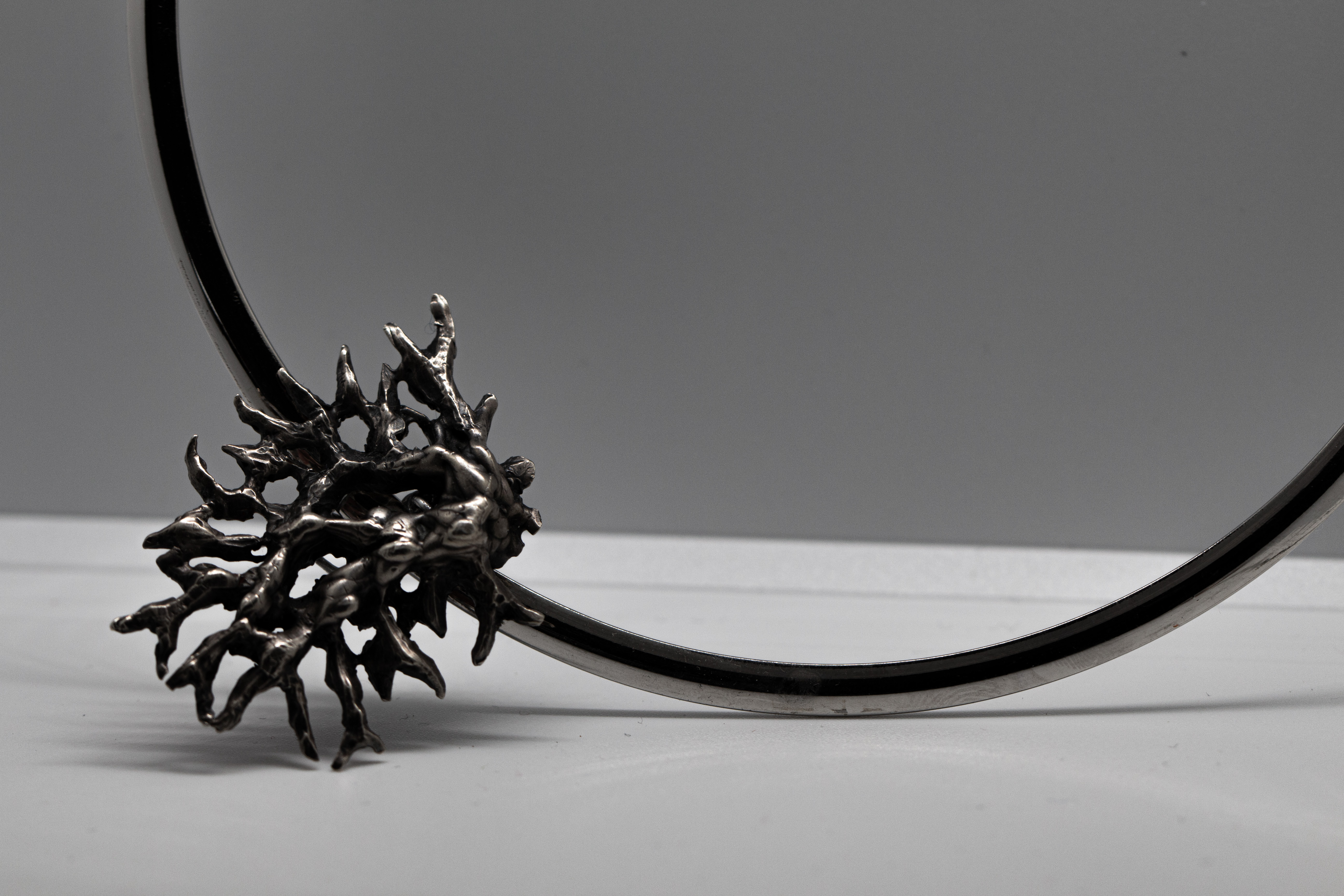 Hand-carved wax, cast in sterling silver, 4.5 × 3.5 × 1.5 cm, Sculptural object. Exhibited in “Traces of Memory”, The BUG (Solo Exhibition, 2025) / Used in collaboration with AUB Bodyscapes d