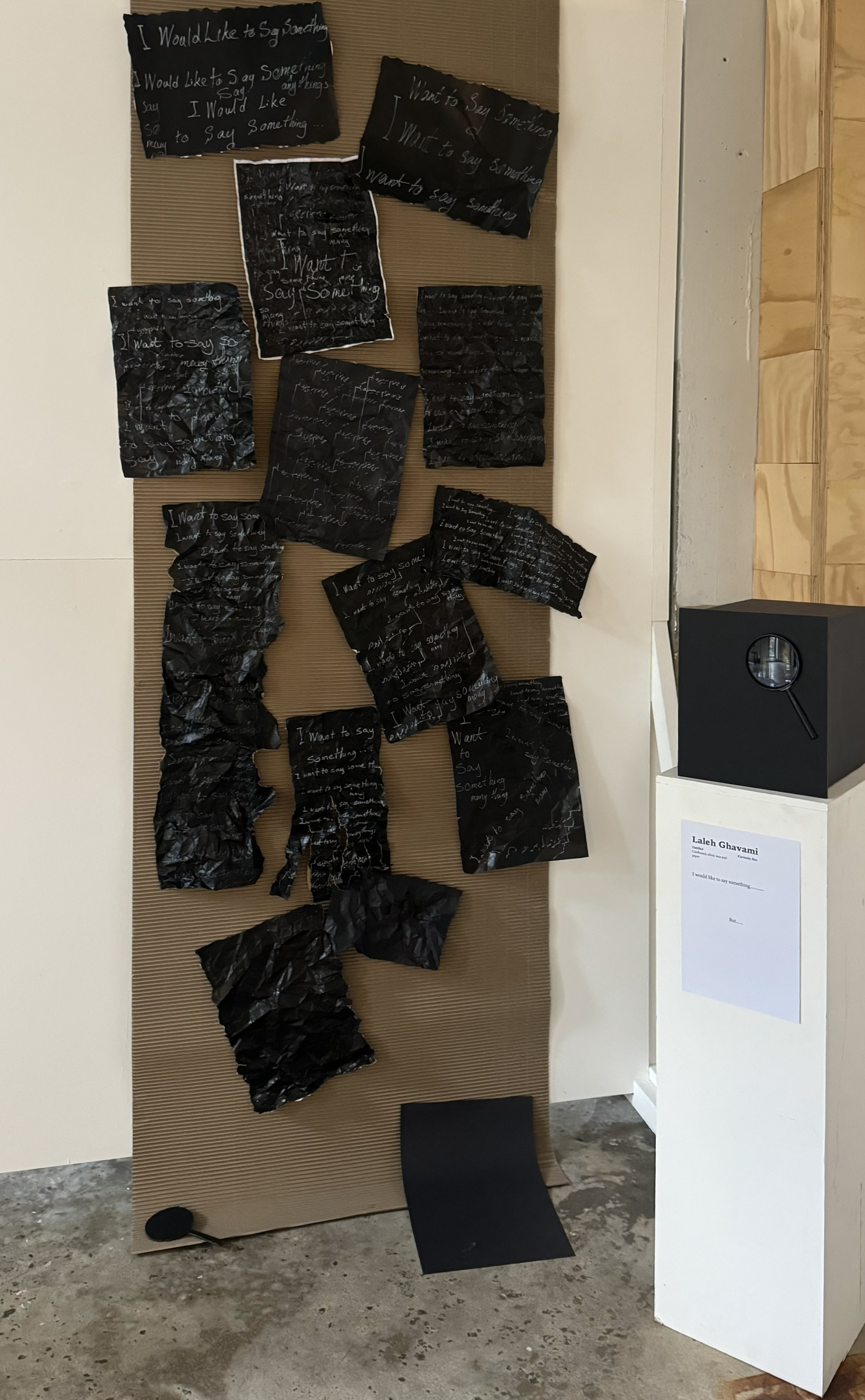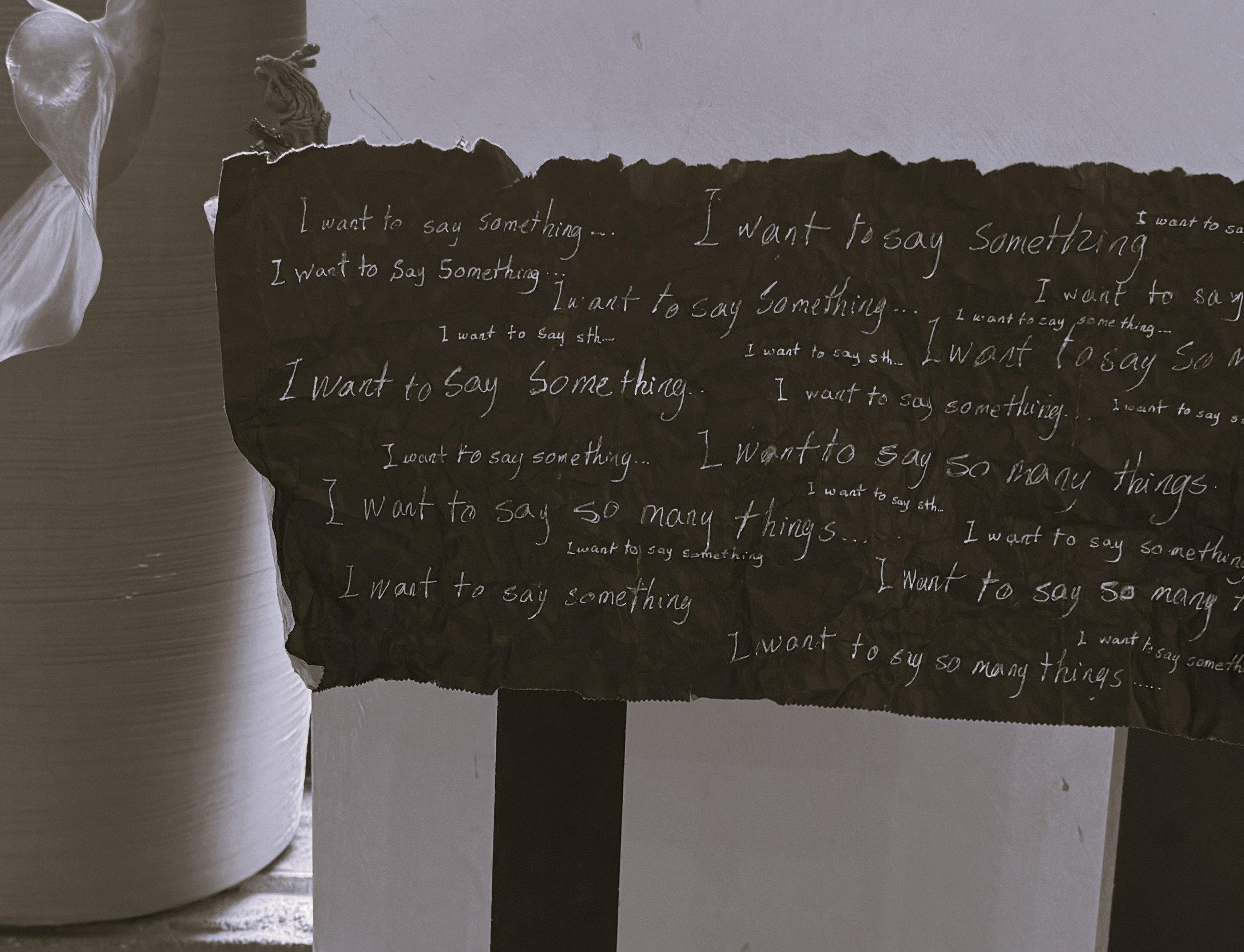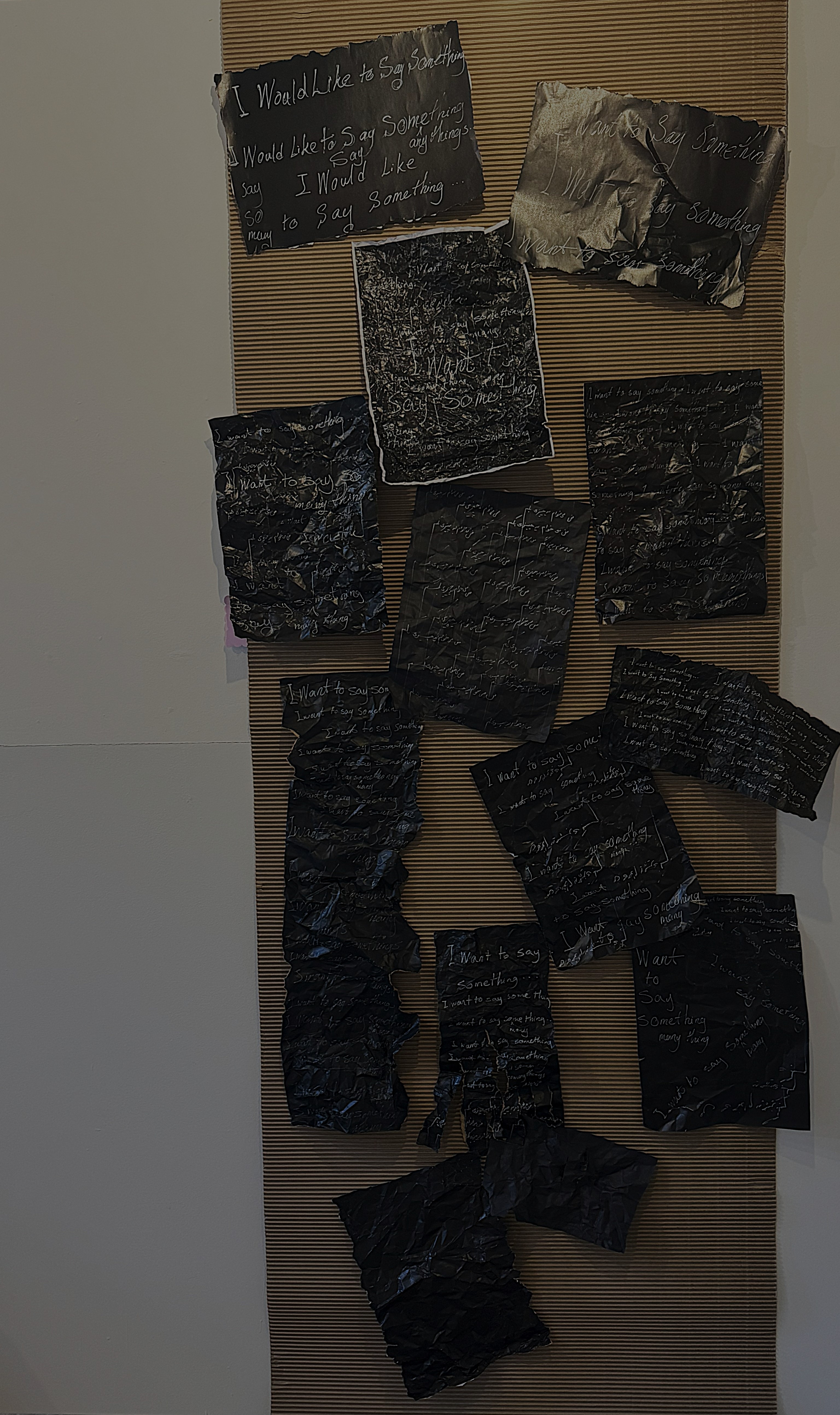 This text-based spatial intervention articulates the emotional turbulence of suppressed speech. Expressive yet constrained, the piece conveys a loud silence—a scream muted by fear.