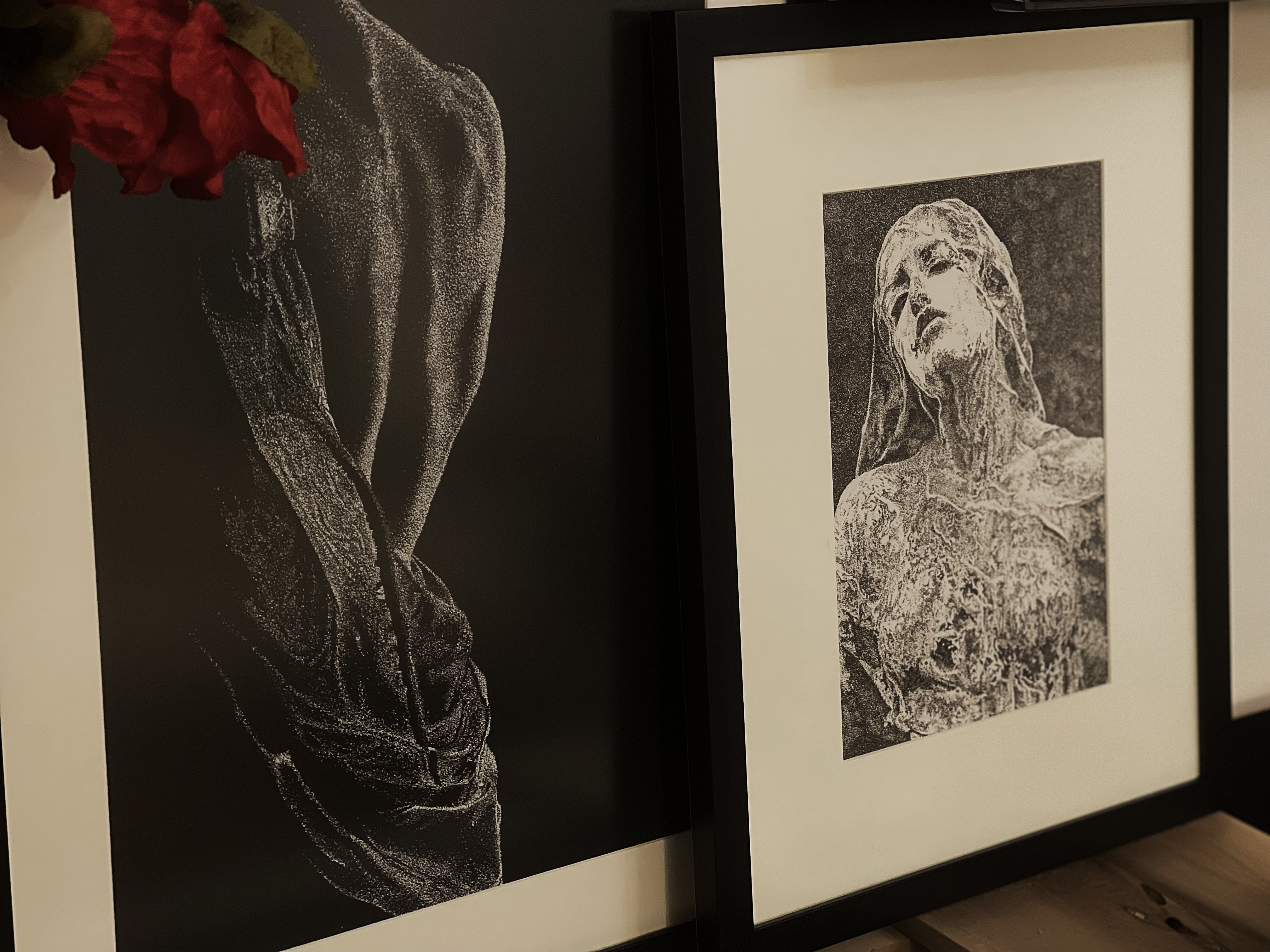violence surfaced gradually. Dotwork functioned as a foundational language,
