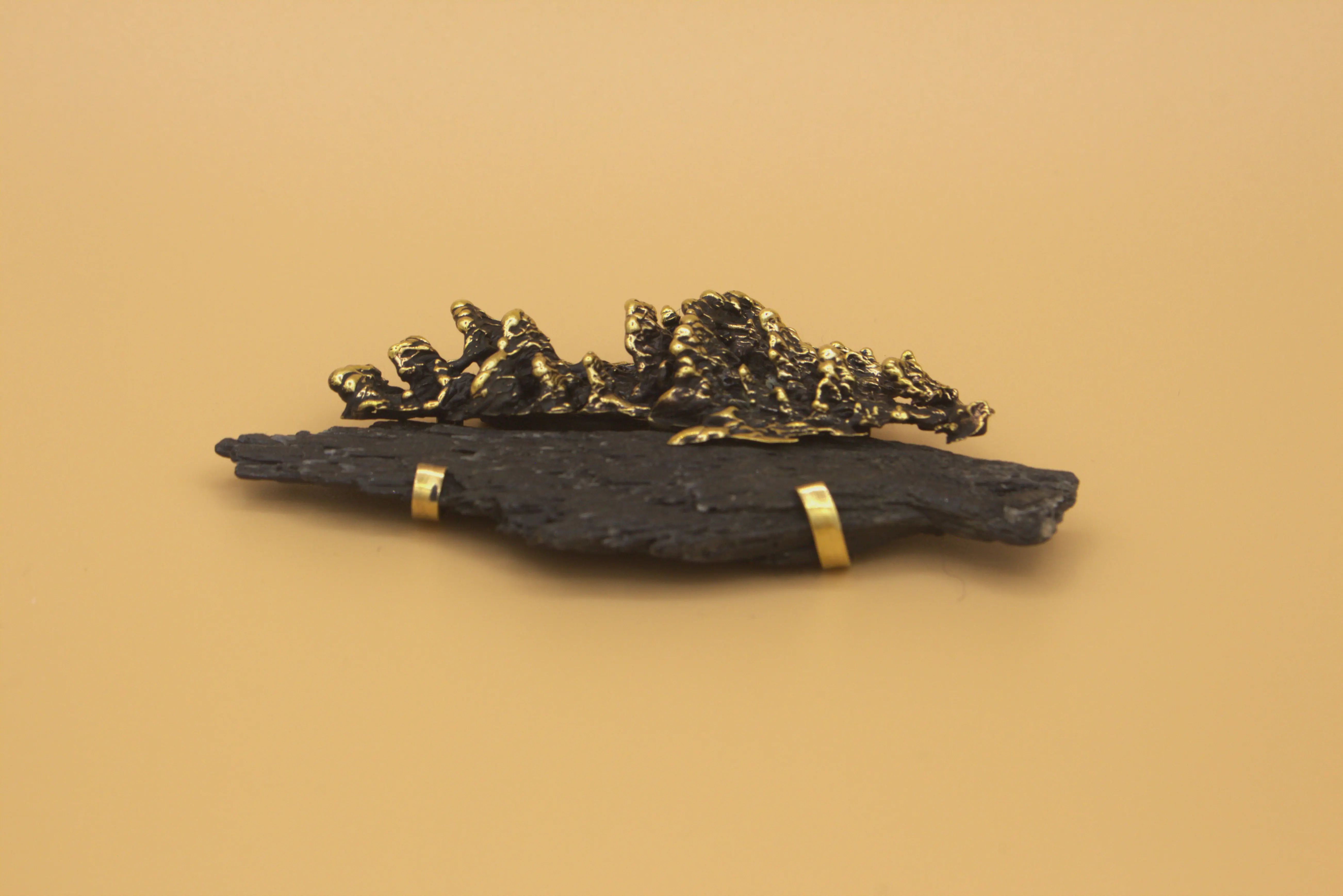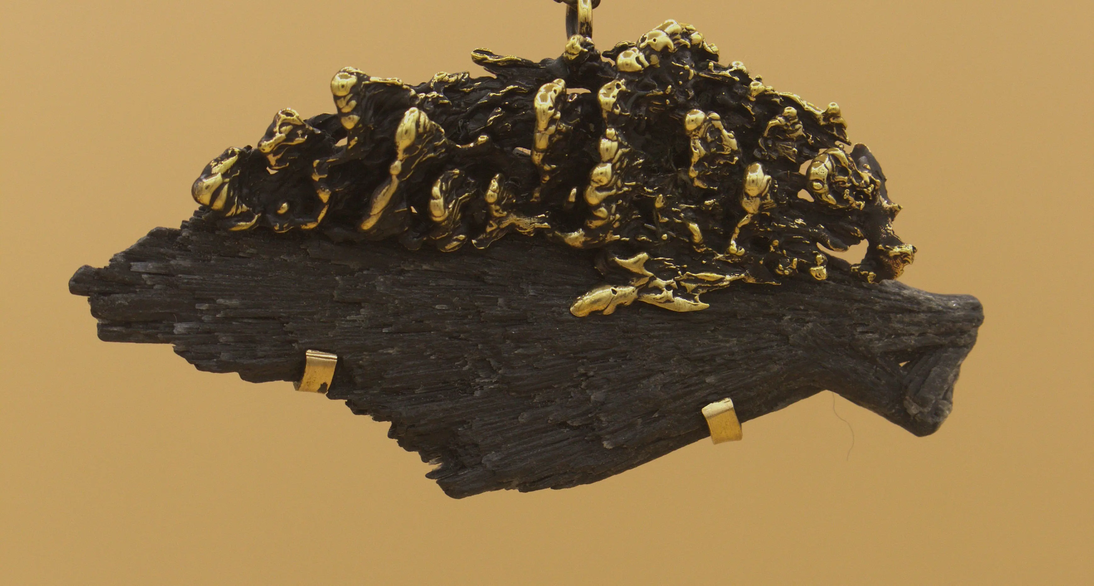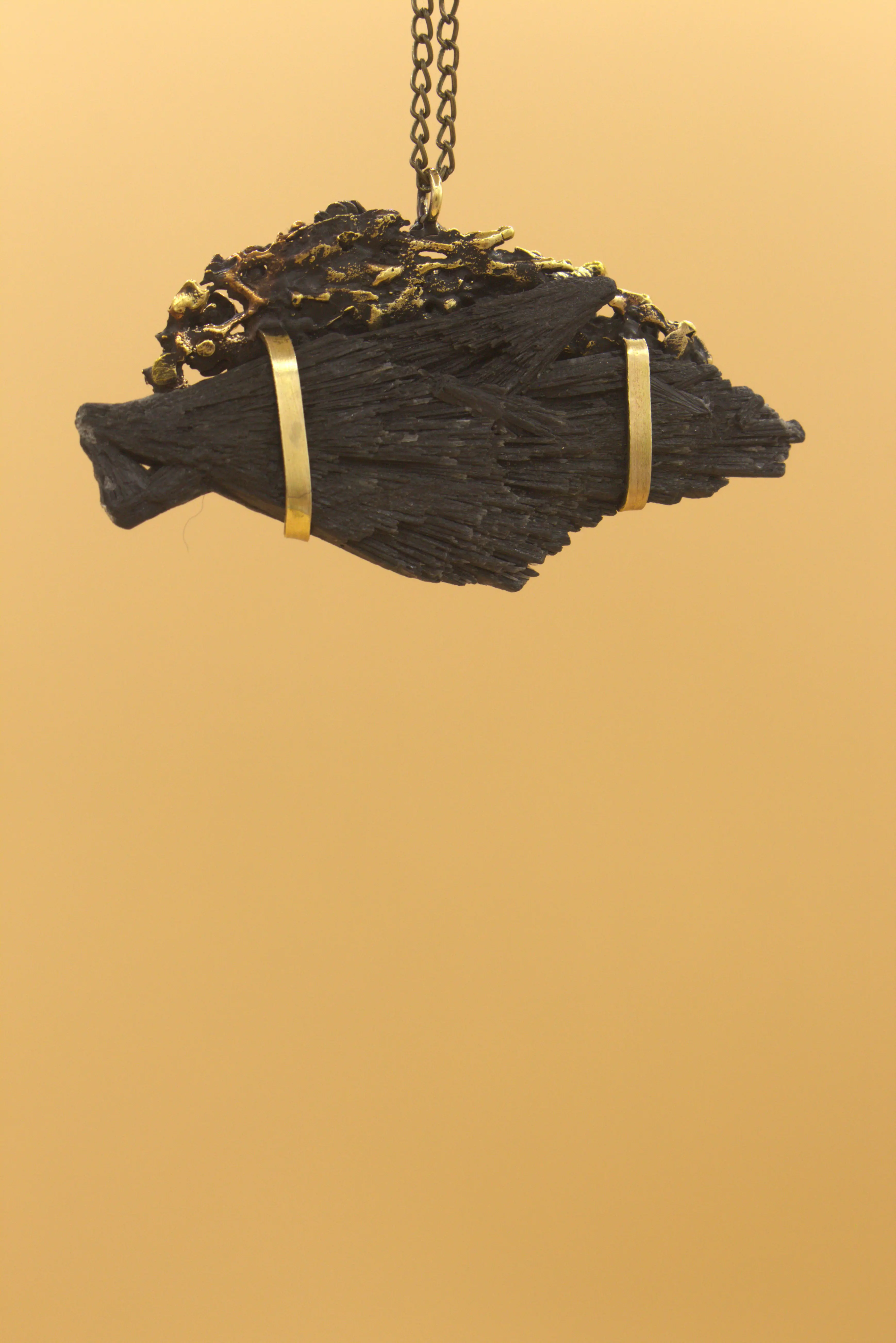 Hand- carved wax, cast in brass, Rough semi-precious stone, 4 × 5.5 × 1.5 cm, Sculptural Object / Wearable piece / Necklace – Exhibited in “Traces of Memory”, The BUG