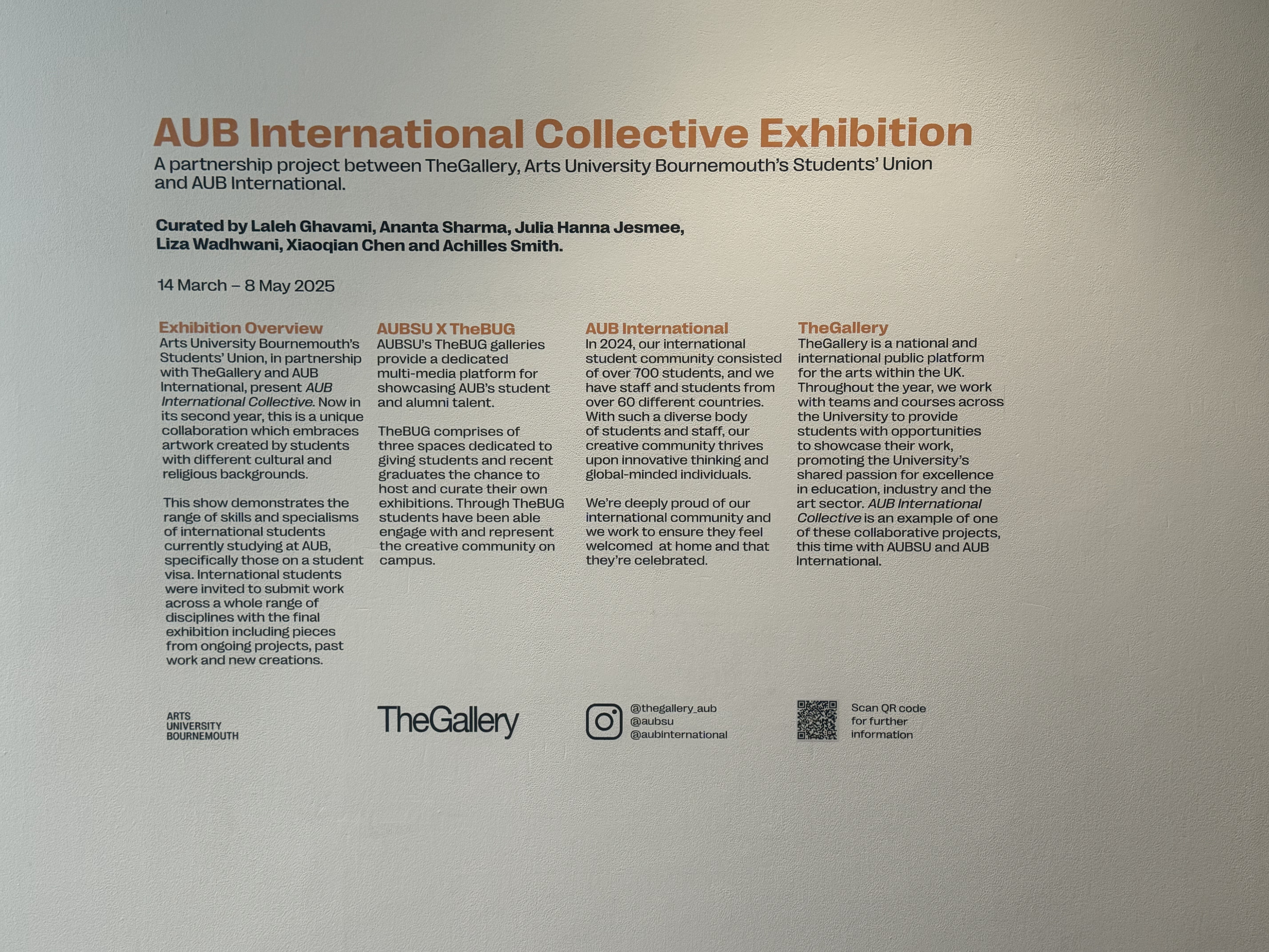 Appointed as Lead Curator for the AUB International Collective Exhibition 2025 at TheGallery, Arts University Bournemouth, a cohesive curatorial vision was developed to shape the conceptual and spatia...