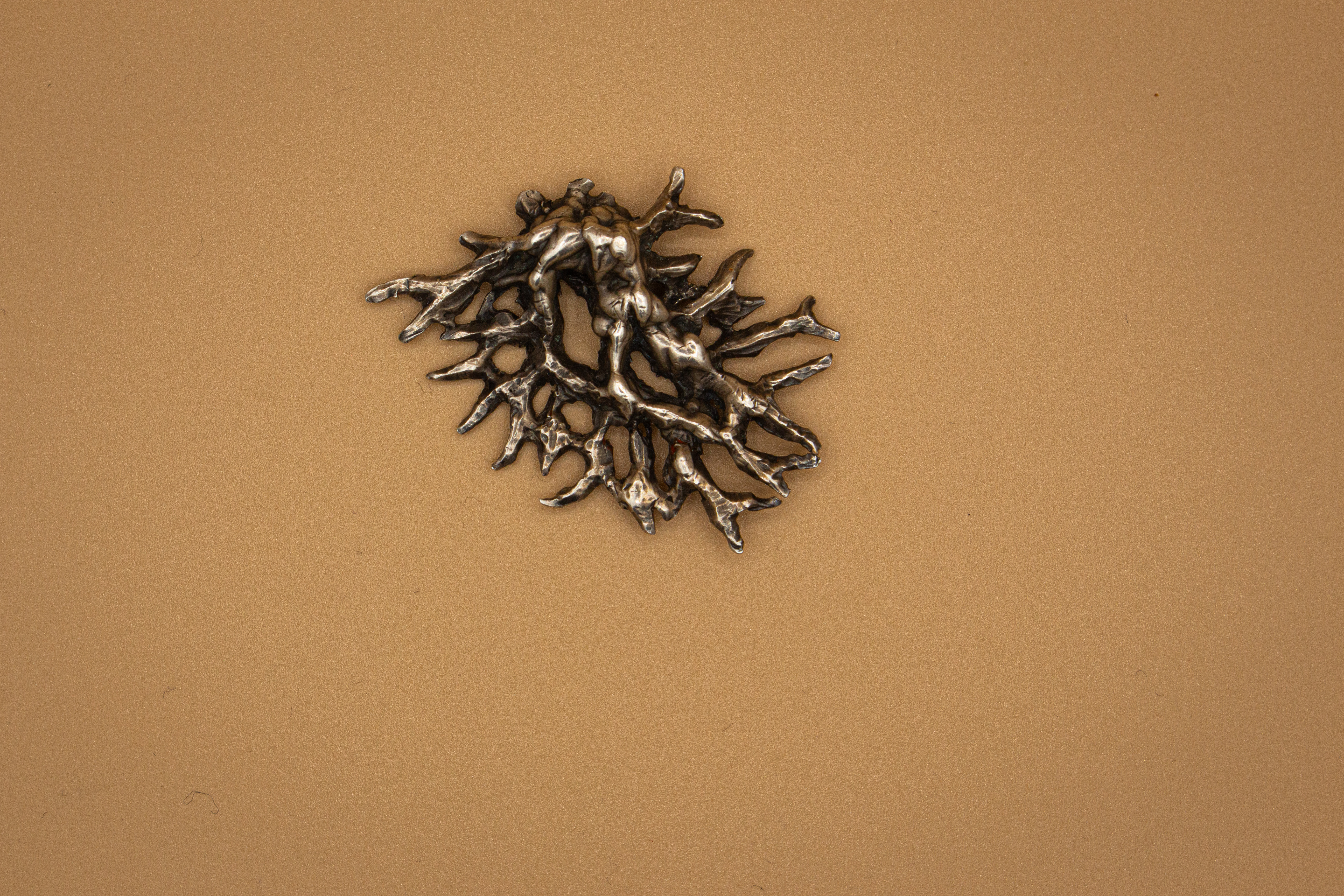 Hand-carved wax, cast in sterling silver, 4.5 × 3.5 × 1.5 cm, Sculptural object. Exhibited in “Traces of Memory”, The BUG (Solo Exhibition, 2025) / Used in collaboration with AUB Bodyscapes d