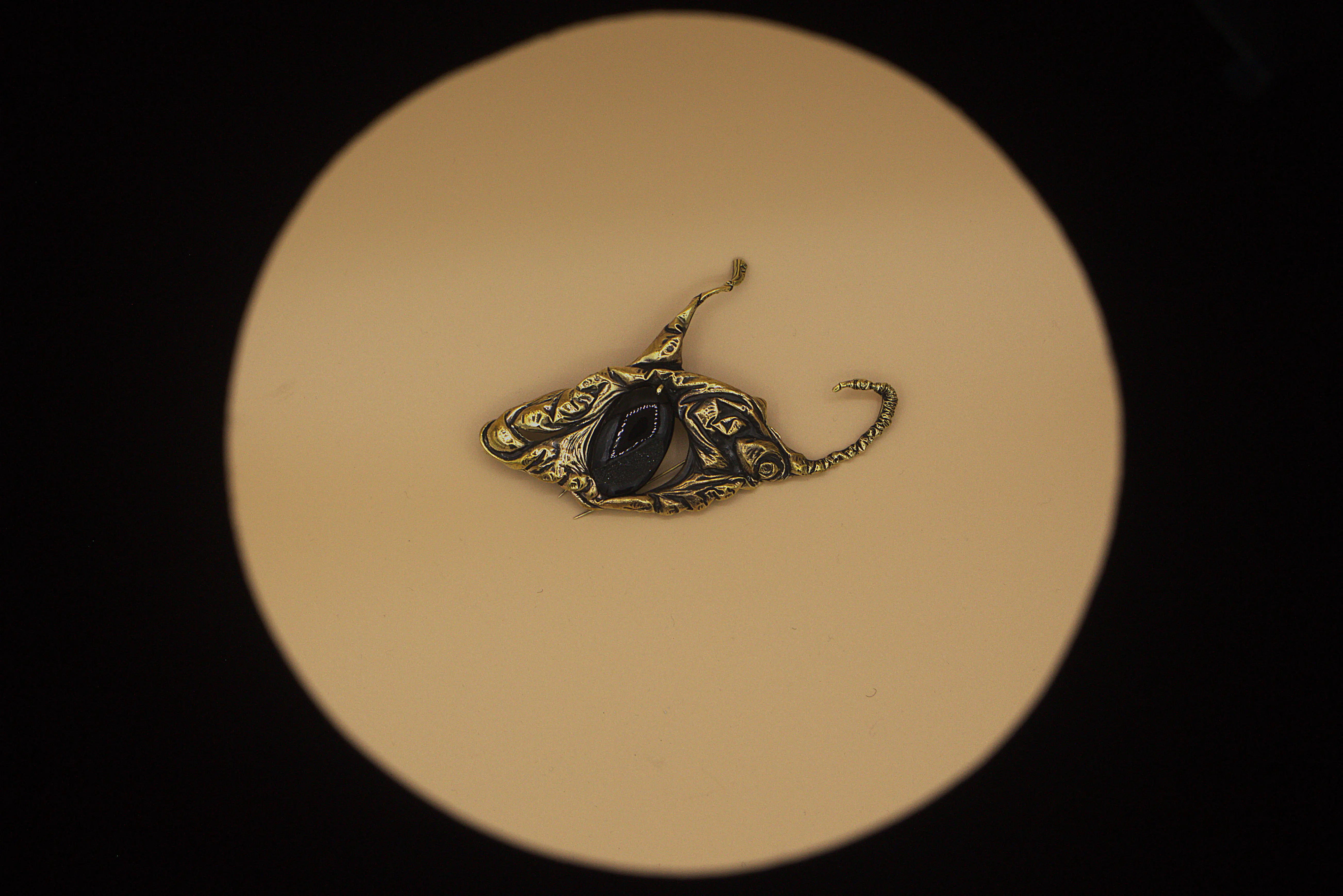 Hand- carved wax, cast in brass, semi-precious stone, 8 × 12.5 × 1.5 cm, Sculptural Object / Wearable piece / Brooch – Exhibited in “Traces of Memory”, The BUG