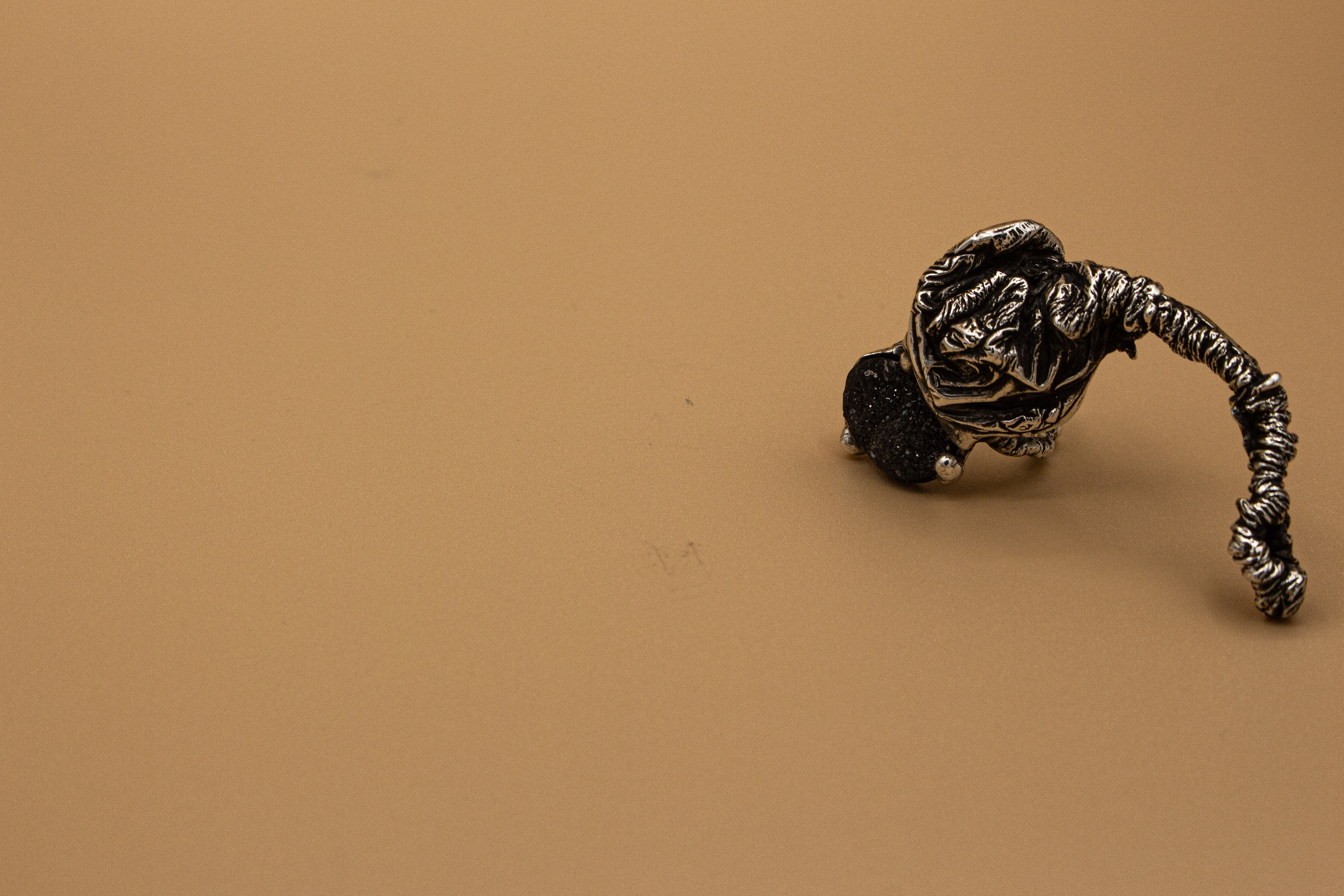 Figurative jewelry focuses more on the appearance and representation of real objects. Conceptual jewelry emphasizes the idea and message and can be designed in abstract or experimental forms.